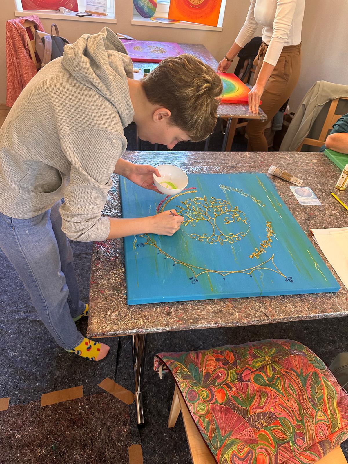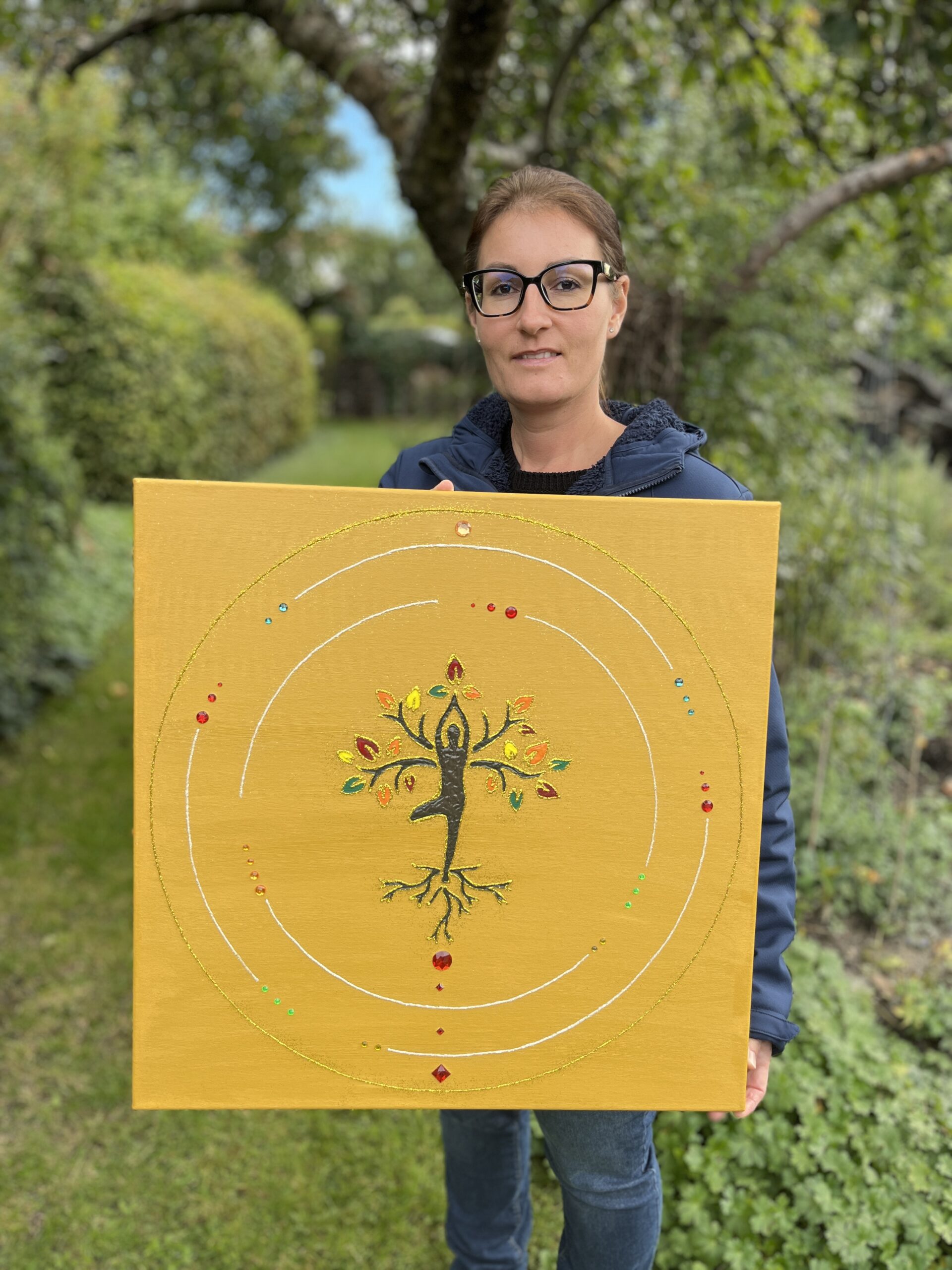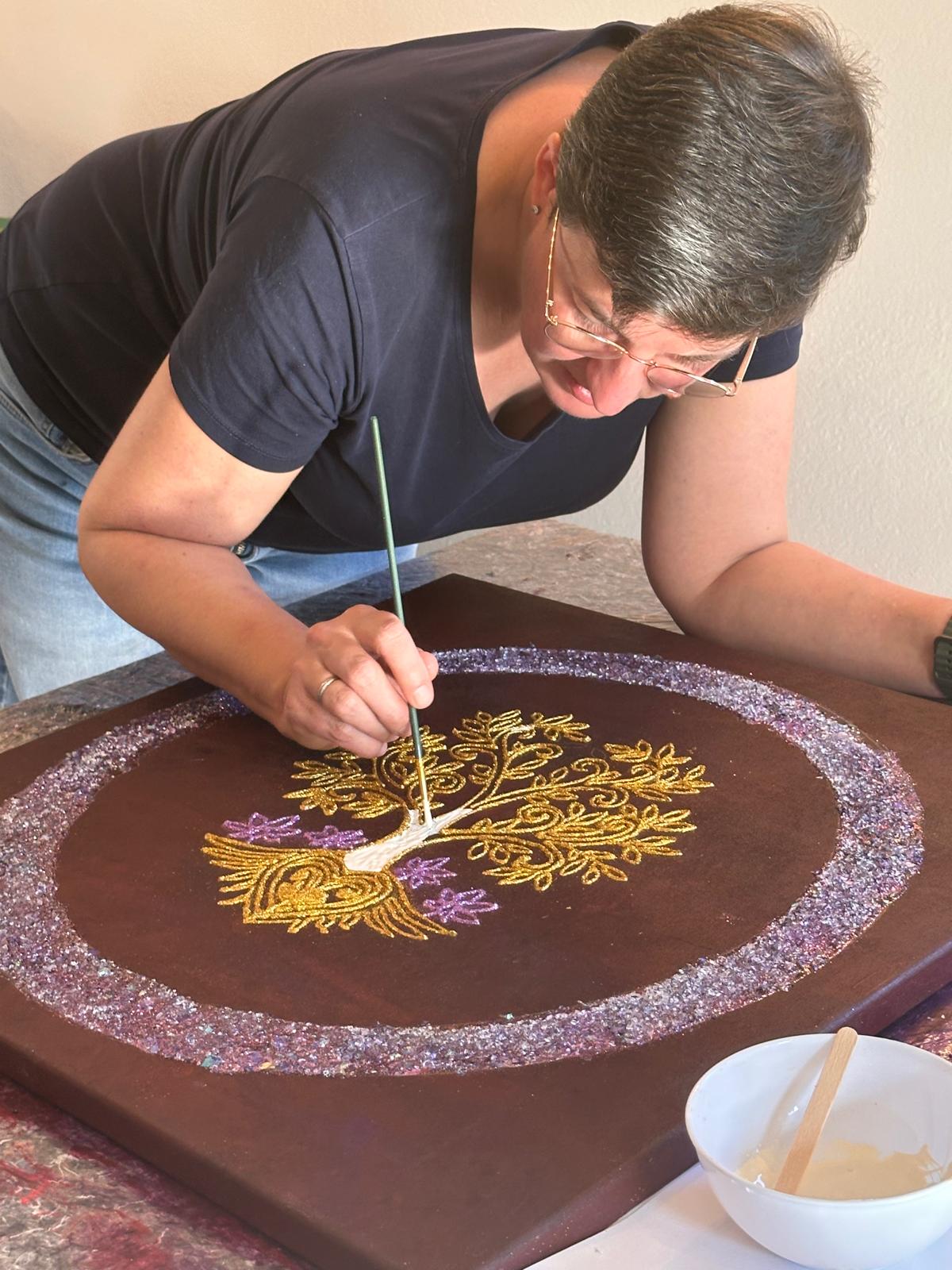 Dein Baum als kraftvolles, magisches und heilsames Symbol entsteht auf einer 60x60cm großen Leinwand. Es wird mit Acryfarben, Steinen, Glitter und Strukturmaterialien gearbeitet.